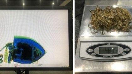 Текширув давомида юклар орасида бир қарашда оддий кўринган дазмол замонавий сканер қурилмаси ёрдамида божхона назоратидан ўтказилганда, ичида умумий қиймати 168 миллион сўмлик 481,5 грамм тилладан ясалган заргарлик буюмлари борлиги аниқланди.