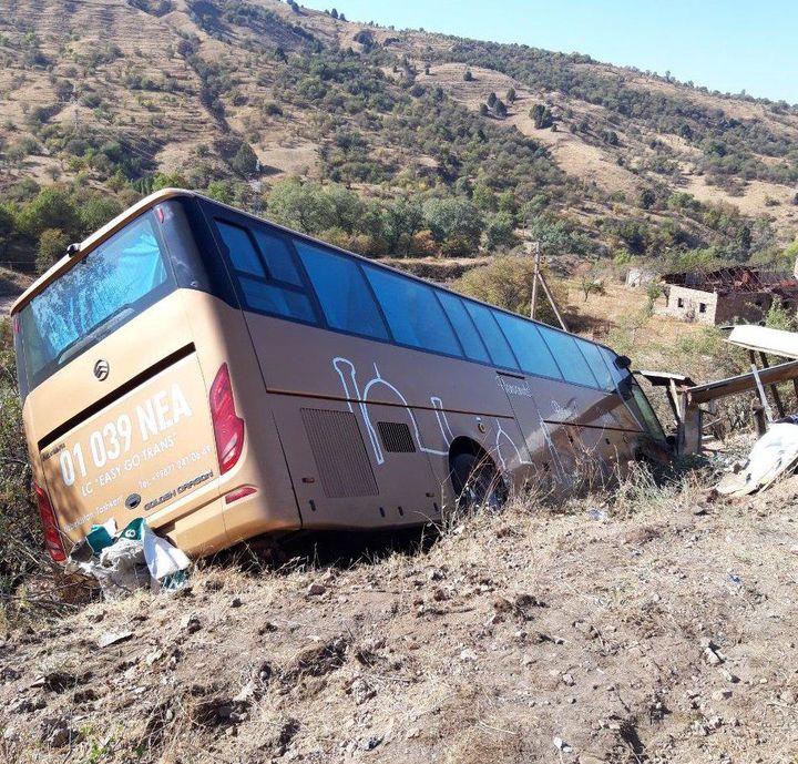 Chimyonda xorijlik sayyohlarga xizmat qilayotgan avtobus jarlikka quladi
