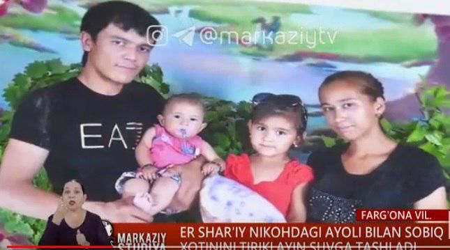 Farg‘onada 29 yoshli erkak shar’iy nikohdagi xotini bilan kelishib, hali qonunan ajrashmagan rafiqasi va ikki nafar farzandini Katta Farg‘ona kanaliga tashlab yubordi. Bu haqda MY5 telekanalining «Markaziy studiya» ko‘rsatuvida ma’lum qilindi.