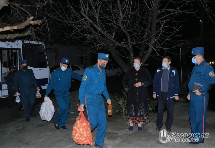 Самарқандда ташкил этилган карантин масканларида хизмат қилаётган тиббиёт ва ички ишлар ходимларининг хонадонига озиқ-овқат маҳсулотлари етказиб берилди.