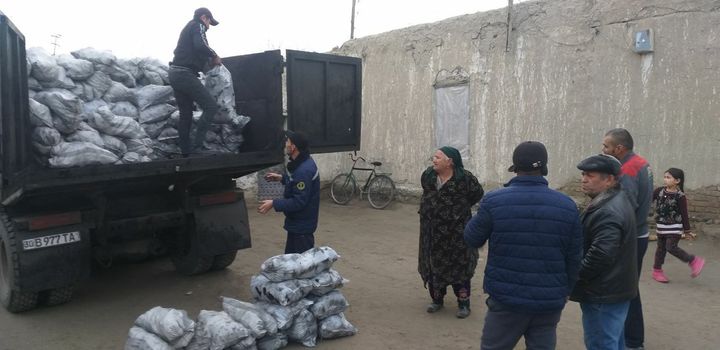 Каттақўрғонлик 10 оилага 8 тонна кўмир тарқатилди