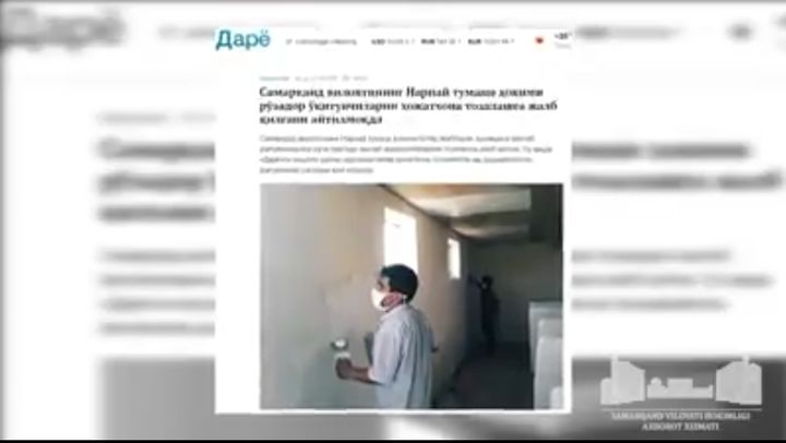 Самарқанд вилояти ҳокимлиги матбуот хизмати Нарпай туманида юзага келган вазият бўйича эълон қилган видеосида 33-мактаб директори Зуҳра Даминованинг фикрига таяниб, туманда мажбурий меҳнат ҳолатини ОАВ вакилларига Халқ таълими вазири Назорат-ҳуқуқий хизматининг Самарқанд вилоятидаги вакили эълон тарқатган, деган иддао келтирилган.