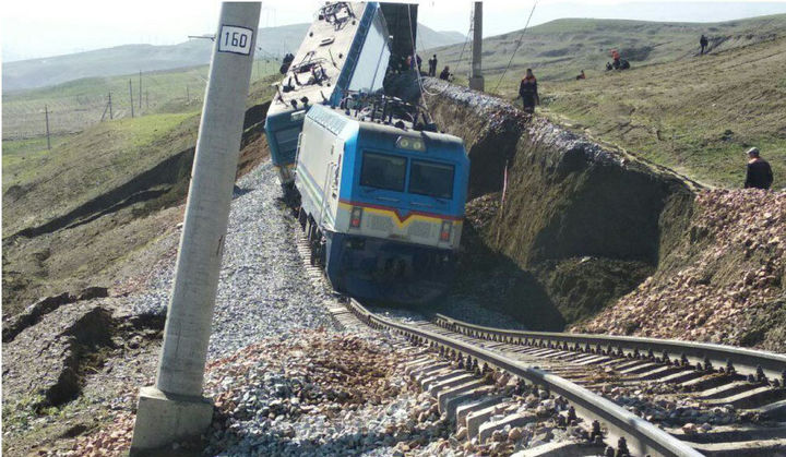 Қашқадарёда кучли ёғингарчилик ортидан поезд рельси чўкиб вагонлар осилиб қолди