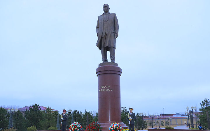 Registon maydoni yaqinida O‘zbekiston Respublikasining Birinchi Prezidenti xotirasiga o‘rnatilgan Islom Karimov haykali poyiga viloyat va shahar hokimliklari, huquqni muhofaza qiluvchi organlar, davlat va jamoat tashkilotlari tomonidan gullar qo‘yildi.