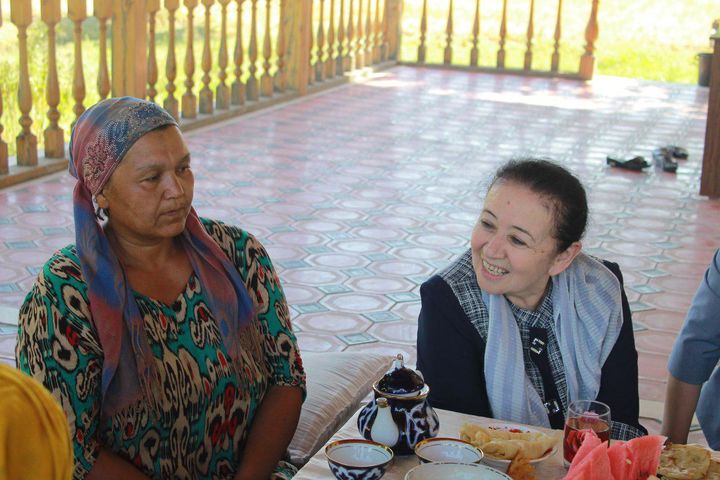 Elmira Bositxonova forum doirasida Jomboy tumanidagi «Gulnora agro yeri» fermer xo‘jaligi ishchi xodimlari bilan uchrashdi. Bu yerda 20 nafarga yaqin xotin-qizlar mehnat qiladi.