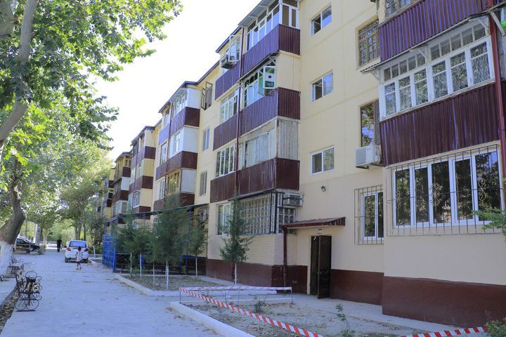 Dastlab “Mikrorayon” hududini ko‘zdan kechirdik. Buyuk Ipak yo‘li ko‘chasidagi 8 yo‘lakdan iborat 18-uyda ham ta’mirlash ishlari olib borilgan. Ammo ta’mirlangan devorlar oldida qattiqroq aksa urilsa, yangi suvoqlari to‘kilguday holatga kelgan.