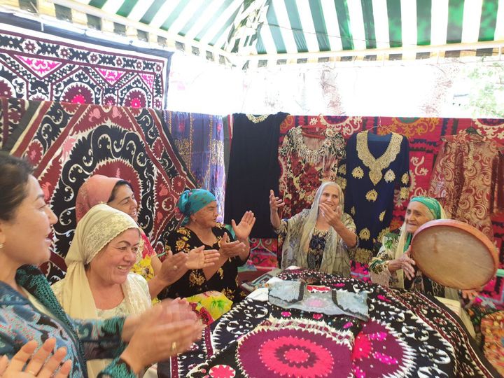 Самарқанд туманидаги сайилда 84 ёшли момонинг кашта тикиш маҳорати барчани ҳайратга солди