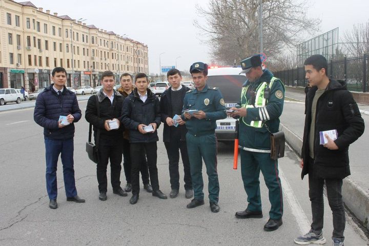 Samarqandda yo‘lovchi va haydovchilarga 600 dona yo‘l harakati qoidalar to‘plami tarqatildi
