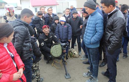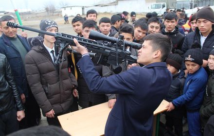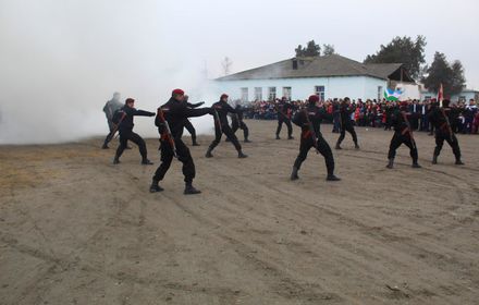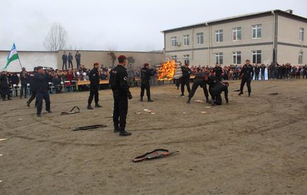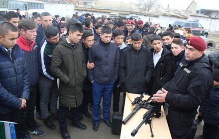 Сўнгра Миллий гвардия машғулотларидан намуналар кўрсатишди. Кинолог итнинг зийраклиги, ўқотар қуроллар кўргазмаси ўқувчиларда қизиқиш уйғотди.