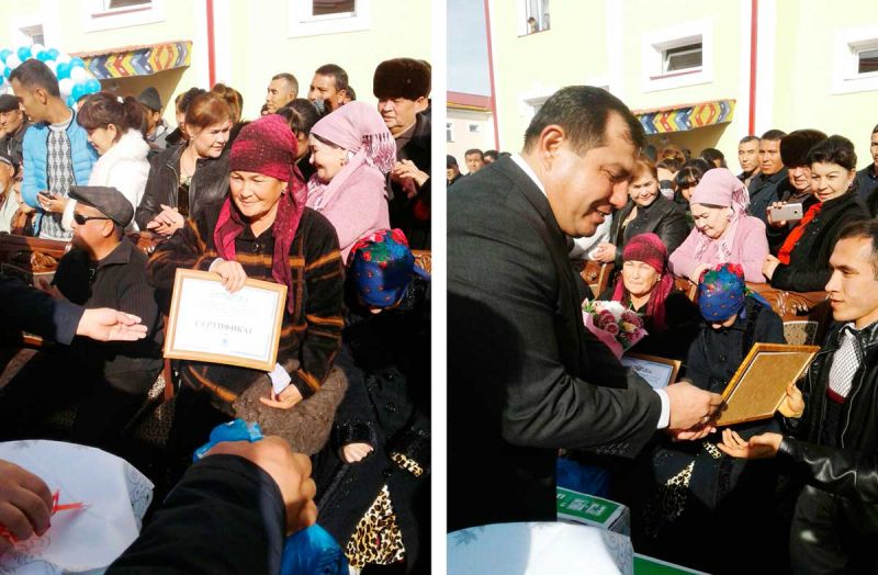 Уй эгаларига туман ҳокимлиги ва ҳомийларнинг эсдалик совғалари топширилди.