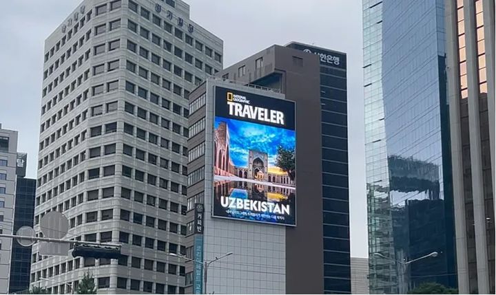 Мазкур лавҳа туризм соҳасида машҳур «Traveler» компанияси «National Geographic» ҳамкорлигида тайёрланган бўлиб, мамлакатимизнинг сайёҳлик имкониятлари, қадимий шаҳарлари, маданий ва тарихий жойлари ҳақида маълумот беради. Юртимиз ҳақида видеоматериаллар бир ҳафта давомида 24 соат ушбу экран орқали кўрсатилади.