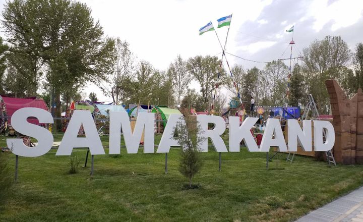 Халқаро бахшичилик санъати фестивалида иштирок этаётган Самарқанд вилояти вакиллари учун ажратилган майдон айни пайтда фестиваль иштирокчилари ва меҳмонлари билан гавжум.