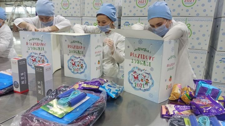 Меҳрибонлик уйлари тарбияланувчилари, ота-она қаровисиз қолган болалар, ота-оналари Ватан сарҳадларини ҳимоя қилиш йўлида қурбон бўлган 3-15 ёшдаги болалар ҳамда ижтимоий ҳимояга муҳтож оилалар фарзандлари учун 11 000 дона “Президент совғаси” тайёрланиб ҳудудларга юборилмоқда.