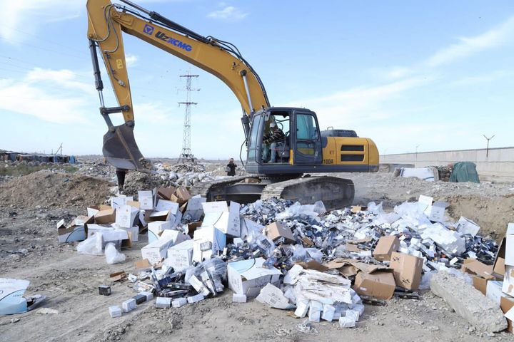 Аввалроқ Самарқанддаги марказий чиқинди полигонида божхона хизмати органлари томонидан қонунбузарлик ашёси сифатида олиб қўйилган ҳамда суд қарорига асосан йўқ қилиниши белгиланган 1,7 миллиард сўмлик тамаки маҳсулотлари утилизация қилинганини хабар қилгандик.