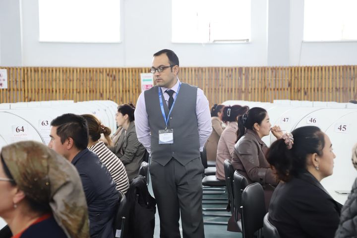 Марказнинг кириш қисмида кутиш зали бўлиб, аттестация имтиҳонига келган падагоглар навбати келгунига қадар шу ерда ўтириши, тест синовларига тайёрланиб туриши мумкин. Кимдир китоб, бошқаси дафтар ўқиб ўтирибди. Тест синовлари жараёнига киришдан олдин педагоглар дастлаб рўйхатдан ўтиши, телефон, сумка каби буюмларини ташқарида қолдириши керак. Кейинги босқичда хотин-қизларга алоҳида, эркак ўқитувчиларга алоҳида ички ишлар ходимларидан иборат гуруҳ текширувдан ўтказяпти. Текширувдан ўтган ўқитувчилар тест синовларига киритиляпти.