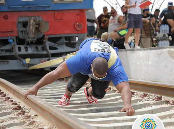 Турнирнинг иккинчи кунида турли мамлакатлардан келган полвонлар “Хива” темир йўл вокзалида “Ўзбекистон поезди” шартида локомотив(тепловоз)ни 20 метр масофага тортиш бўйича беллашишди.
