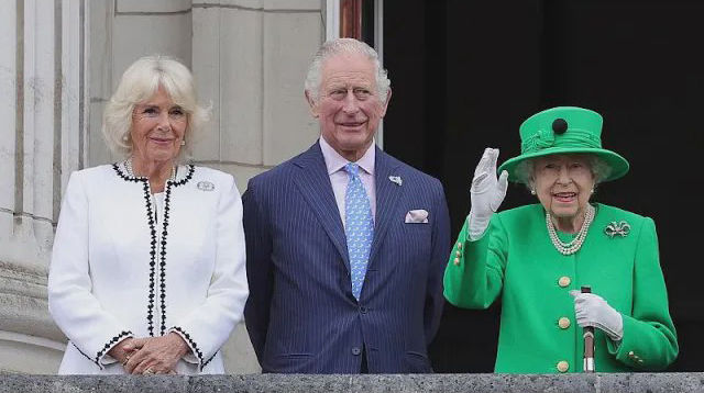 Қиролича оила аъзолари қуршовида Букингем саройи балконига чиқди ва минглаб одамларни табассум ва анъанавий имо-ишора билан кутиб олди.