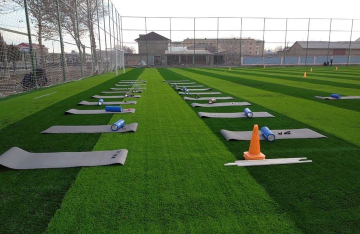Жамоа Чархин қўрғонидаги болалар-ўсмирлар футбол мактабида клуб ҳомийси «Agromir Buildings» томонидан фойдаланишга топширилган сунъий қопламали майдонда машғулотлар ўтказмоқда.