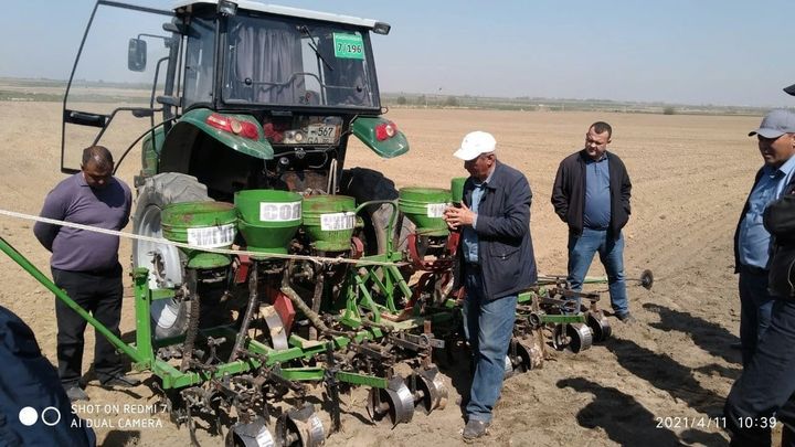 Туманнинг “Илм” массивидаги "Шаҳриёр Аббос чорвалари" фермер хўжалиги даласида чигит ва сояни бир вақтда экиш ва ундириб олиш, агротехникаси билан боғлиқ масалаларга доир ташкил этилган семинарда бу жараёнлар мутахассислар томонидан тушунтирилди.
