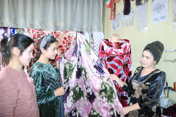 Буни туманнинг Қуйи Тегана маҳалласида яшовчи ҳунарманд аёл Фотима Эшимова эплаяпти. У фаолиятини бундан 16 йил аввал оддийгина тикув машинаси билан бошлаган. Ҳозирда эса 10 дан зиёд замонавий дастгоҳи бор.