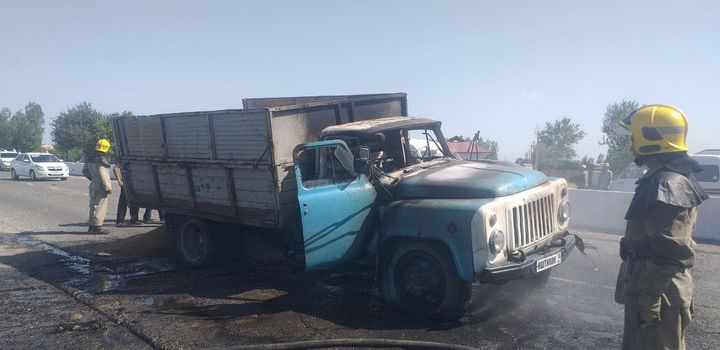 Иштихонда юк автомашинасида юз берган ёнғин бартараф этилди