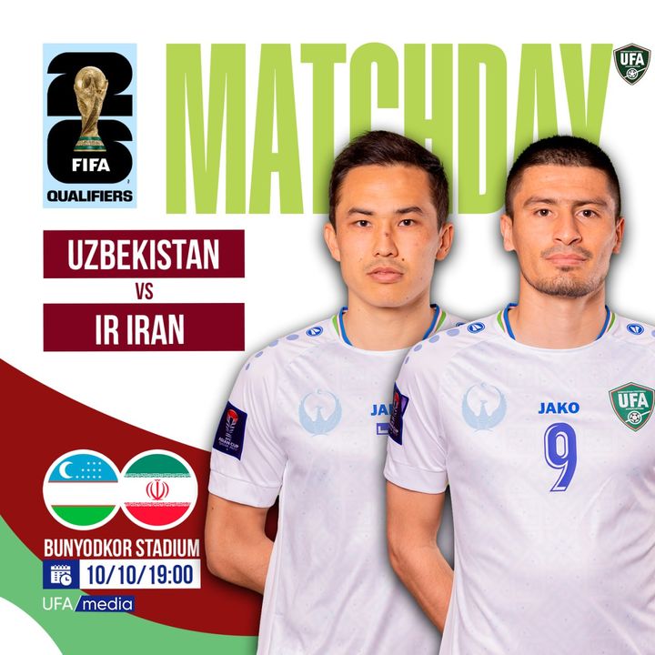 2026 йилги жаҳон чемпионати Осиё саралаш турнирининг учинчи босқичида олти очко билан пешқадамлик қилаётган футболчиларимиз бугун, 10 октябрь куни соат 19:00 да Тошкент шаҳридаги "Бунёдкор" стадионида вакилларимиз билан бир хил очко тўплаган Эрон миллий терма жамоасига қарши майдонга тушади.