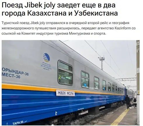 "Казинформ" халқаро ахборот агентлигининг маълум қилишича, "Jibek joly" поезди 100 дан ортиқ сайёҳлар билан "Олмаота-Туркистон-Тошкент-Самарқанд-Чимкент-Олмаота" йўналиши бўйича йўлга чиққан.