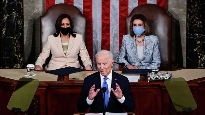 Жо Байден АҚШ Конгрессининг иккала палатаси олдида нутқ сўзлади, атиги икки юз нафар қонунчилар шахсан иштирок этди, қолганлари президентнинг нутқини видеоалоқа орқали кузатиб борди. Ва мамлакат тарихида биринчи марта вице-президент ўрнини аёл Камала Харрис эгаллади.