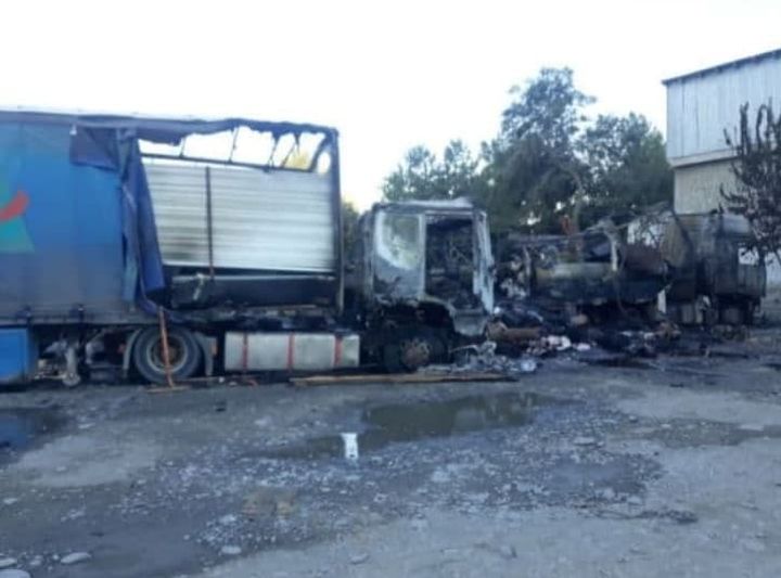 Жомбойдаги автотураргоҳда чет эл фуқароларига тегишли юк автомобиллари ёниб кетган