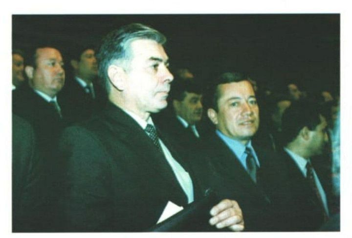 Суратда: Холмуҳаммад Нуруллаев (чапда) Тойлоқ тумани ҳокими Жамшид Ашуров (Аллоҳ раҳмат қилсин) билан. 2004 йил.