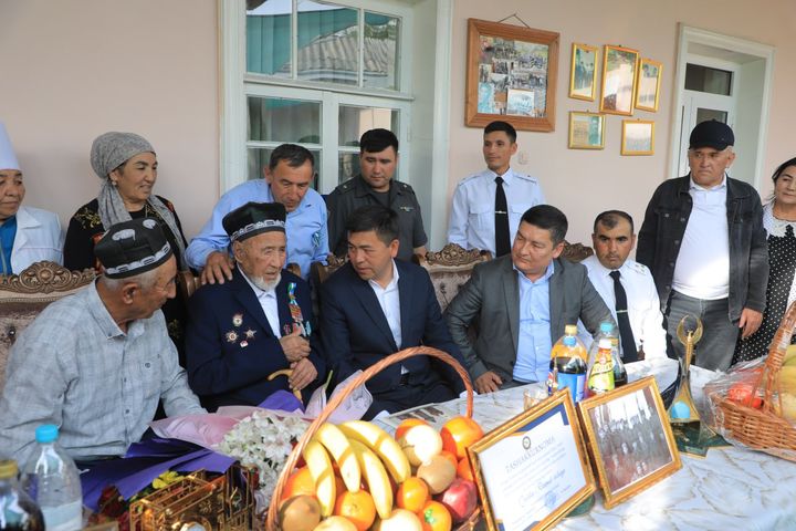 Viloyat va tuman hokimligi mutasaddilari, sektor rahbarlari, harbiylar, faollar Bog‘ot mahallasida yashovchi 100 yoshli Rahmat bobo Qobilov va Tarnov mahallasida yashovchi 100 yoshli Rayim bobo Yusupov xonadoniga tashrif buyurib, davlatimiz rahbarining qimmatbaho sovg‘asi va 20 million so‘m bir martalik pul mukofotini topshirdi.