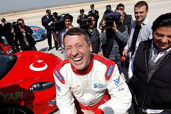 Шентурк "Ferrari F430" пойга машинаси тезлигини Урфа шаҳри яқинидаги аэропорт учиш-қўниш йўлагида амалга оширди.