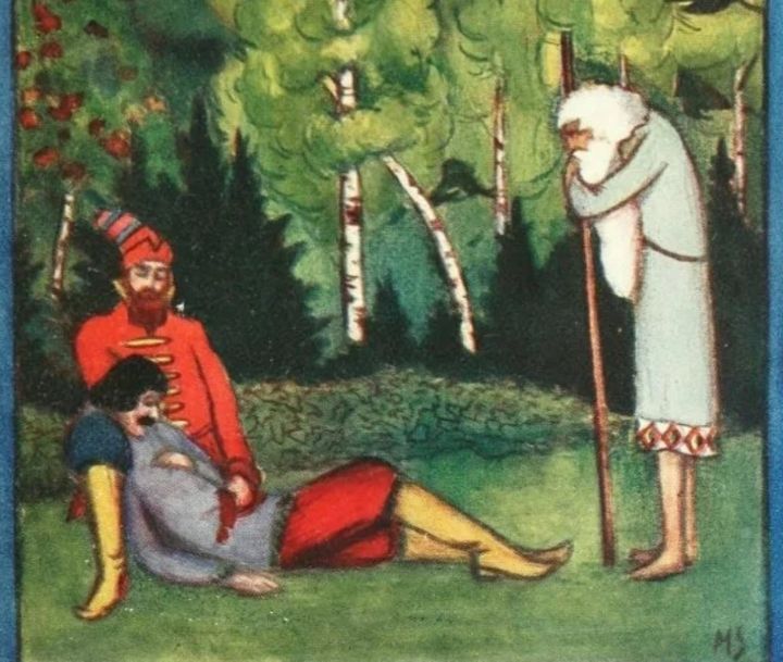 Ўгирилиб қараган шоҳ ўрмондан югуриб келаётган бир соқолли одамни кўрди. Бу одам қўллари билан қорнини ушлаб келарди, қўллари остидан қон оқаётган эди. Соқолли одам подшоҳ олдига югуриб келиб, ерга йиқилди, у кўзларини тепага қаратиб, қимирламасдан ётиб олди, фақат кучсиз инграрди. Подшоҳ зоҳид билан бирга унинг кийимларини очиб ташлади, қорнида катта жароҳат бор экан. Шоҳ қўлидан келганича уни ювиб, рўмоли ва зоҳид берган сочиқ билан боғлаб қўйди. Лекин қон кетиши тўхтамади ва подшоҳ бир неча марта илиқ қонга ботган боғични ечиб, ярани яна ювиб, боғлаб қўярди. Қон оқиши тўхтагач, ярадор ўзига келиб, ундан сув беришни сўради. Шоҳ сув олиб келиб, ярадорга ичирди. Бу орада қуёш ботиб, ҳаво салқин бўлиб қолди. Подшоҳ зоҳид билан бирга ярадорни кулбага олиб бориб, уни ётқизиб қўйишди. Ярадор кўзларини юмиб, жим бўлиб қолди. Шоҳ юриб, ишлаб шунчалик чарчаган эдики, остонада чўккалаб ухлаб қолди, у шунчалик қаттиқ уйқуга кетибдики, ёзнинг қисқа туни ўтиб, тонг отганини сезмай қолди. Саҳарда уйғониб, анча вақтгача қаердалигини ва ётоқдаги унга чақнаб турган кўзлари билан тикилиб турган ғалати соқолли одам кимлигини тушунолмади.