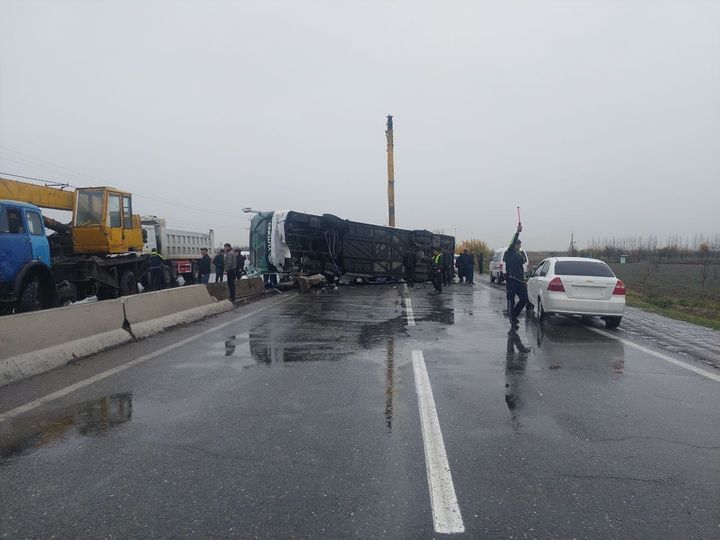 Бугун, 22 ноябрь куни соат 11:50 лар атрофида Оқдарё тумани "Мулла кичкина" маҳалла фуқаролар йиғини ҳудудидан ўтувчи "М-37" автомобил йўлининг 30-километрида йўловчи ташиш фаолияти билан шуғулланувчи Бухоро вилоятига тегишли бўлган "Yutong" русумли транспорт воситаси “Бухоро-Тошкент” йўналиши бўйлаб ҳаракатланаётиб тезликни меъёридан оширган. Йўлда ёмғир ёққани, йўлнинг сирпанчиқлигини инобатга олмаганлиги сабабли рул бошқарувини йўқотиб, йўлни иккига ажратиб турувчи бетон тўсиққа бориб урилиб, ўнг тарафга ағдарилиши оқибатида йўл-транспорт ҳодисаси содир этган.