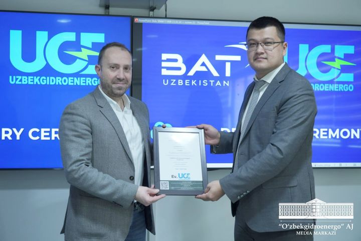 O‘zbekistonda birinchi “yashil energiya” sertifikatlari Samarqanddagi “BAT Uzbekistan” kompaniyasiga topshirildi