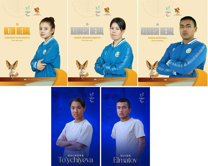 Пара таэквондодан Кароматой Рустамова олтин, Умида Мамаражабова кумуш, пара армрестлинг бўйича эса Акбар Бозоров кумуш ва бронза медалларига эга чиқди.