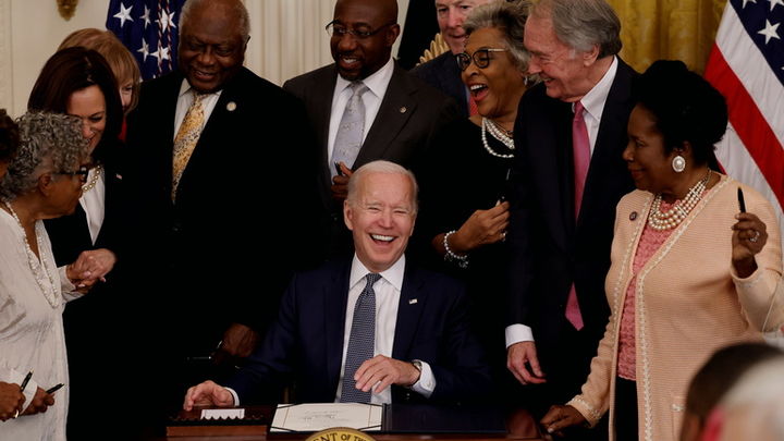 Қонун лойиҳасини Конгрессга Техас демократ партияси вакили тақдим қилди, у қулликни "Американинг илк гуноҳи" деб атади. Конгресс қонун лойиҳасини бир овоздан қўллаб-қувватлади. Қуллик бекор қилинган кун аллақачон кўплаб штатларда байрамга қилинмоқда.
