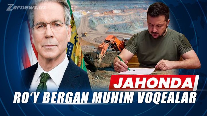 🔹 АҚШ ва Украина фойдали қазилмалар бўйича келишув имзолаган эди. Бу келишув орқали Вашингтон 350 миллиард доллардан ортиқ маблағ олиши мумкин, дея маълум қилади АҚШ Молия вазирлиги. Бугун Украина Бош вазирининг биринчи ўринбосари Қўшма Штатлар билан қўшма инвестиция фондини ташкил этишни назарда тутувчи минерал ресурслар бўйича келишув имзоланганини тасдиқлади. Томонлар Украина ҳудудида фойдали қазилмаларни биргаликда қазиб олишади.