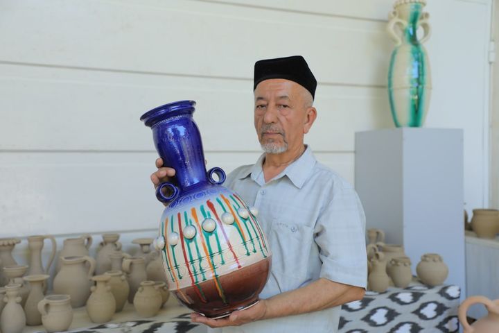 – Бугун юртимиздаги кўплаб музейлар, кўргазмаларда мен ясаган буюмлар намойиш этилса-да, санъат шайдолари улар билан яқиндан танишишлари учун Халфа Иброҳим маҳалласида – ўз хонадонимда кўргазма ташкил этдим, – дейди академик кулол. – Кўргазмадан ўзим ясаган минг хил кўзалар, қадимий кулолчилик буюмлари намуналари, шунингдек, ўғлимнинг ижодий асарлари ўрин олган. Халқимиз, хорижлик сайёҳлар ҳам хонадонимизга келиб, кўргазмани томоша қилишлари, иш жараёнимиз билан танишишлари мумкин.