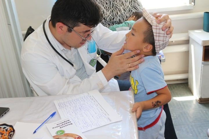 Туманнинг олис қишлоқларидан туман марказий поликлиникаси ва Бахмал қишлоғидаги 3-сонли оилавий поликлиникага таклиф этилган болаларни клиниканинг юқори малакали врачлари кўрикдан ўтказиб, зарур тавсиялар берди.