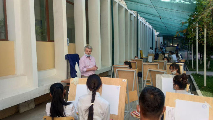 Имтиҳонда дастлаб ҳар бир гуруҳдан номзод чиқиб, комиссия аъзолари тузган имтиҳон билетлардан бирини танлади. Ҳар бир гуруҳга билетда кўрсатилган тасвирни қалам ёки бўёқда чизиш топширилди. Абитуриентларга танланган натюрморт қўйилди ва чизиш учун 1 соат вақт берилди. Шуниси аҳамиятлики, пандемия шароитида ушбу йўналишда абитуриентлар фақат ижодий имтиҳон топширди.