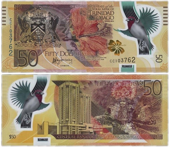 Мамлакат марказий банкининг 50 йиллигига бағишлаб чиқарилган олд юзида катта гибискус гули, қизил бошли кардинал қуши ва давлат герби тасвирланган полимерли 50 долларлик купюра 2014 йилда дунёдаги энг гўзал банкнот деб топилди. Пальма баргига ўхшатиб стилизацияланган қуш патлари ёруғлик бурчагига қараб яшил рангдан кўк рангга товланади вамаҳаллий колоритни акс эттиради.