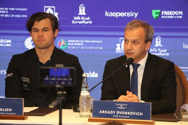 Бугун, 26 декабрь куни Самарқандда шахмат бўйича жаҳон чемпионати старт олади. Кеча чемпионат олдидан ўтказилган матбуот анжуманида Халқаро шахмат федерацияси президенти (ФИДE) Аркадий Дворкович ҳам иштирок этиб, журналистларнинг саволларига жавоб қайтарди.