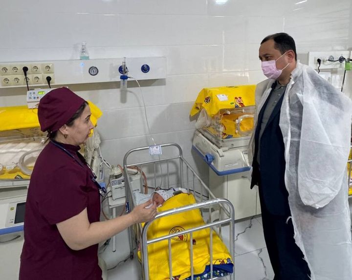 Viloyat sog‘liqni saqlash boshqarmasi boshlig‘i Suhrob Zayniyev chaqaloqning holidan xabar olib, tibbiy xizmat bo‘yicha zarur tavsiyalarni bergan.