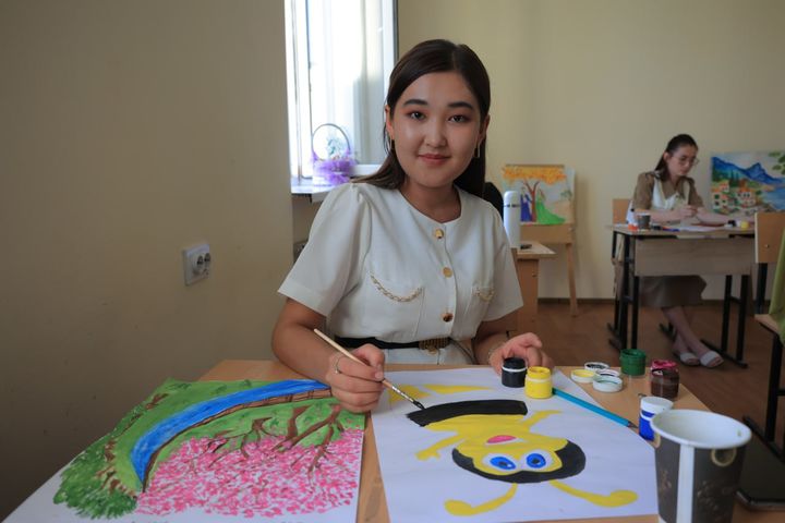 To‘garakda kimdir tikish, kimdir to‘qish yoki kashta tikish bilan band. Talaba-qizlar bo‘sh vaqtini o‘zlari sevgan hunar bilan mazmunli o‘tkazmoqda.