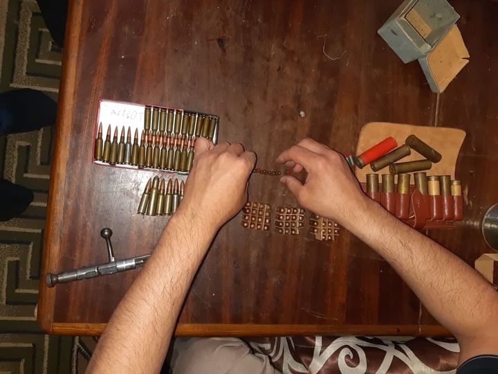 Ўтказилган тадбир давомида унинг яшаш уйида 2 дона ов қуроли, Калашников автомати (АК-74) учун мўлжалланган 27 дона 5,45 миллиметрли патрон ва АКМ учун мўлжалланган 6 дона 7,62 миллиметрли патрон, 6 дона 5,5 миллиметрли патрон, 4 дона пахтовон патрон, 4 дона 16 калибрли ов қуроли учун мўлжалланган патрон, 6 дона 16 калибрли ов қуроли учун мўлжалланган гилзалар, 1 дона патрон ҳамда Макаров пистолети учун мўлжалланган 43 дона 9 миллимтерли патрон, 1 дона ов қуролига тегишли бўлган затвор, 1 дона ов қуролига тегишли бўлган ствол ноқонуний равишда сақлаб келаётганлиги аниқланди. Ушбу жанговар патрон ва қуроллар далилий ашё сифатида холислар иштирокида тегишли тартибда ҳужжатлаштирилди.