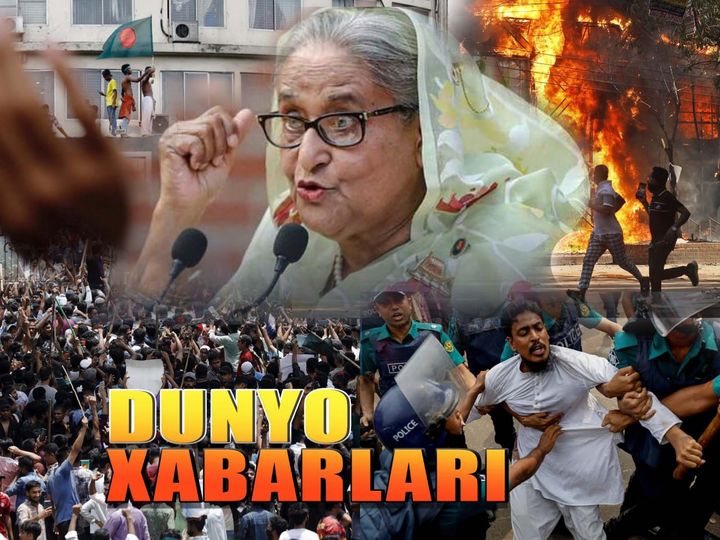 🔹 Bangladeshda bir oy oldin ommaviy norozilik namoyishlari hukumat ishlari uchun kvotalar tizimini tugatish talabi bilan boshlangan edi, ammo politsiya va hukumat tarafdorlari bilan to‘qnashuvlar zo‘ravonlikka aylandi. To‘qnashuvlarda kamida 300 kishi, jumladan 14 nafar politsiyachi halok bo‘lgan. Bugun namoyishchilar vazir qarorgohiga bostirib kirishgan va bosh vazir Shayx Hasinani iste’foga chaqirishini talab qilishgan. Bosh vazir Shayx Hasina iste’foga chiqqan va singlisi bilan mamlakatni tark etgan. Bangladesh armiyasi qo‘mondoni mamlakatda o‘tish davri hukumati tuzilishini aytdi.