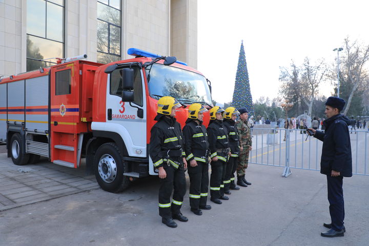 Байрам тадбирлари ўтказилаётган жойларда фавқулодда вазиятларнинг олдини олиш ва ёнғин хавфсизлигини таъминлаш мақсадида фавқулодда вазиятлар бошқармасининг 54 нафар офицер ҳамда 23 та ёнғин ўчириш автомобиллари 110 нафар экипажи билан кечаю кундуз навбатчилиги ташкил этилган.