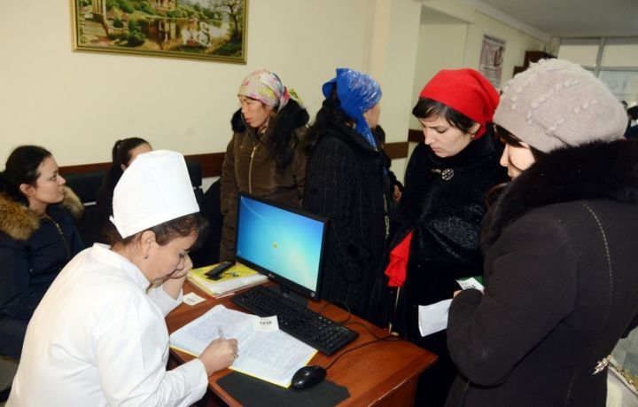 Соат 10:30 ларда бинога кириб борганимизда марказ ходимлари директор ҳузурида мажлисда эканини айтишди. Зал эса тиббий кўрик учун келган аёллар билан гавжум эди.
