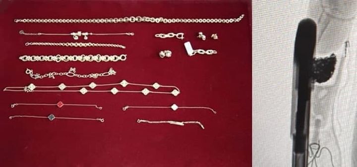 Шундан сўнг ушбу шахс божхона постидаги боди-сканер қурилмаси орқали кўздан кечирилганида, ўнг қўлига ўрнатилган протез орасига 75 грамм оғирликдаги қиймати 23,6 миллион сўмлик заргарлик буюмлари яширилганлиги фош қилинди.